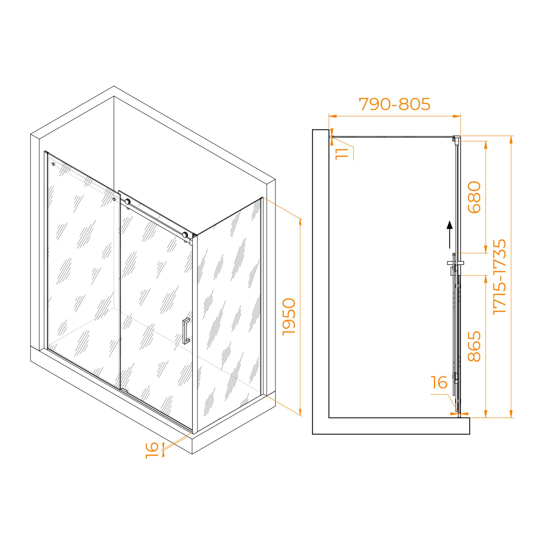 Душевой уголок RGW TO-44B (TO-14B + Z-050-2B) 02074478-14 170x80см чёрный