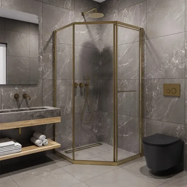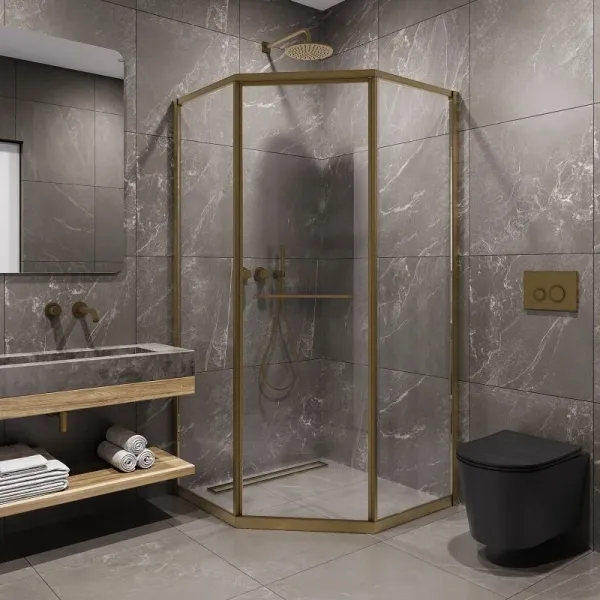 Душевой уголок Timo T34L 100x100 см левый золото матовое