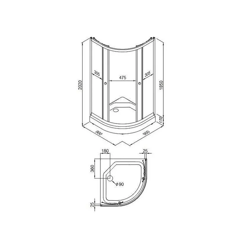 Ширина 90 см Глубина 90 см Высота 202 см Высота поддона 17 см Глубина поддона 6.5 см Толщи... Подробнее