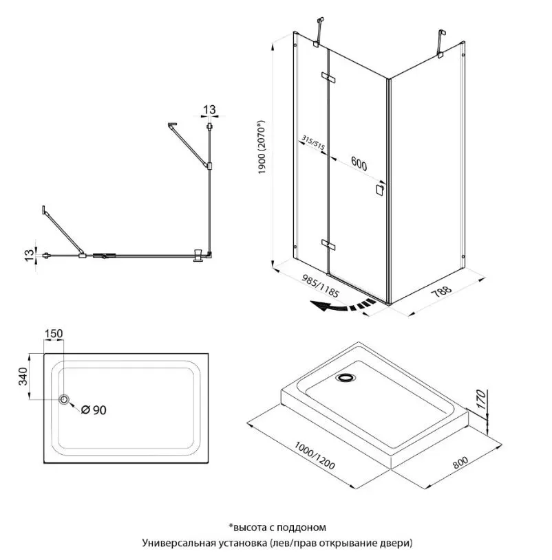 Душевой уголок Triton Брава Щ0000054195 120x80 см профиль хром стекло прозрачное купить