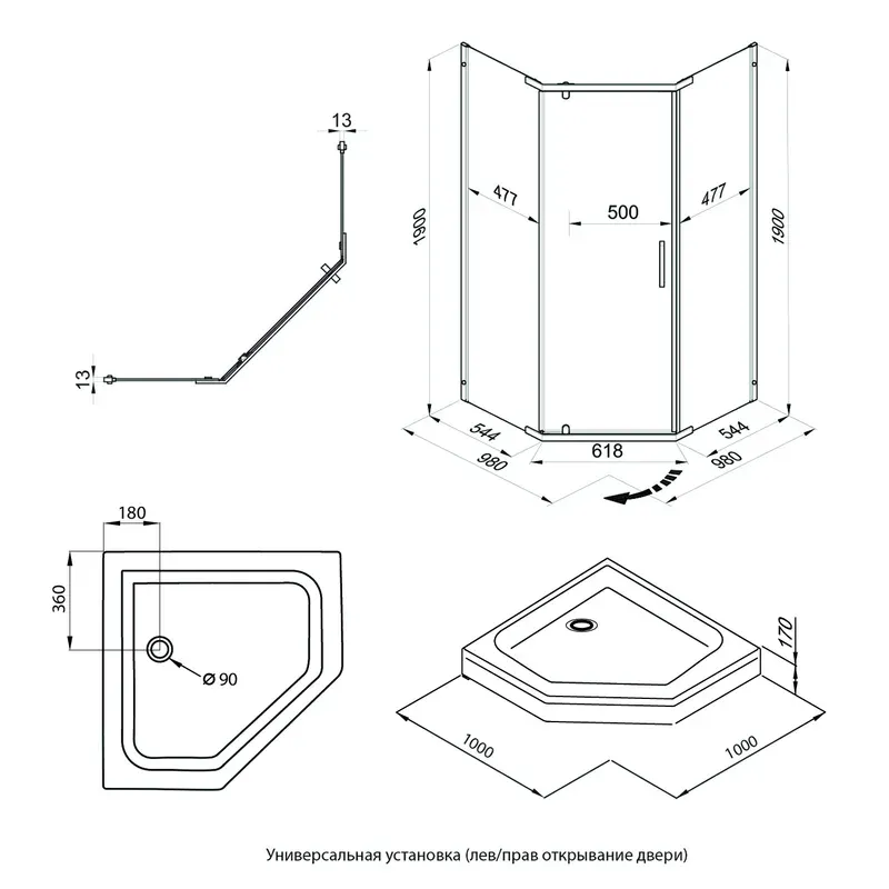 Душевой уголок Triton Дека -Голд  Щ0000073928 100x100 см профиль золото стекло прозрачное