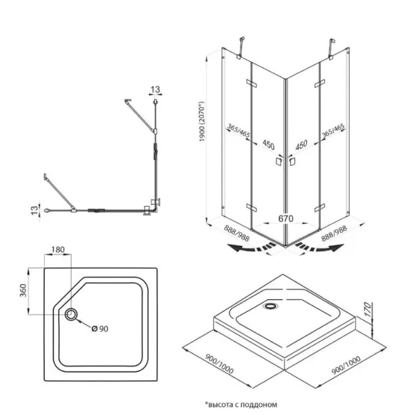 • Размеры: 90х90х190