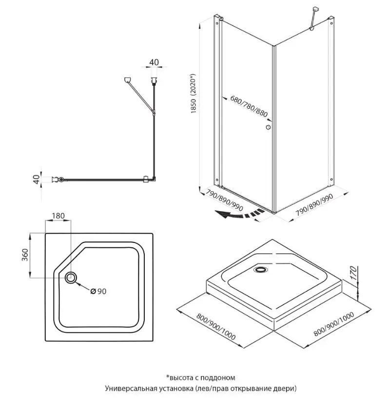 Душевой уголок Triton Форта Щ0000053344 90x90 см профиль хром стекло прозрачное купить