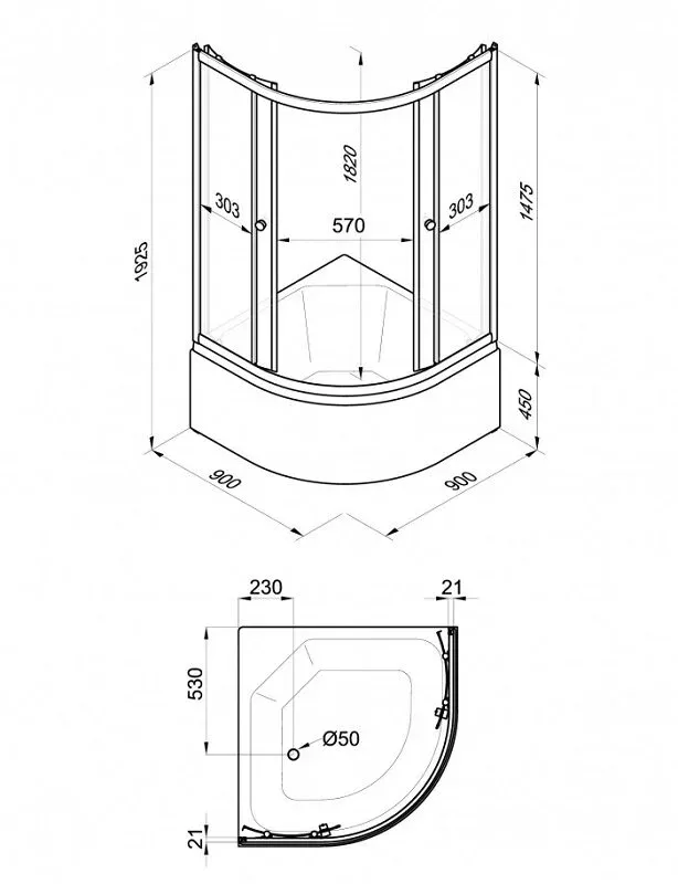 Душевой уголок Размер: 90 x 90 x 147.5 см Высота с поддоном: 192.5 см Конструкция дв... Подробнее