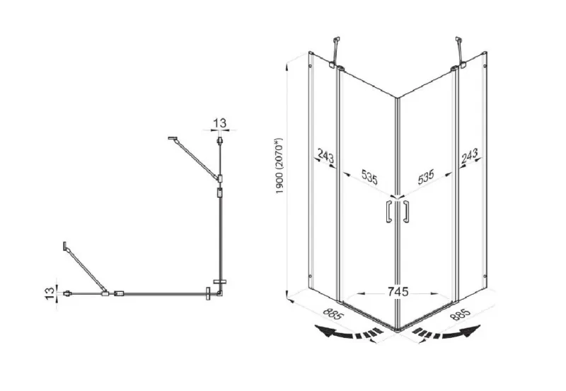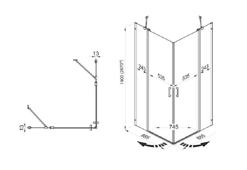 Душевой уголок Без поддона Размер: 90 x 90 x 190 см Конструкция дверей: раcпашная ... Подробнее