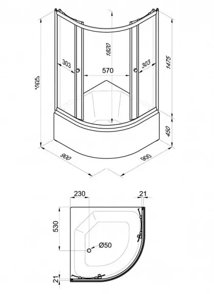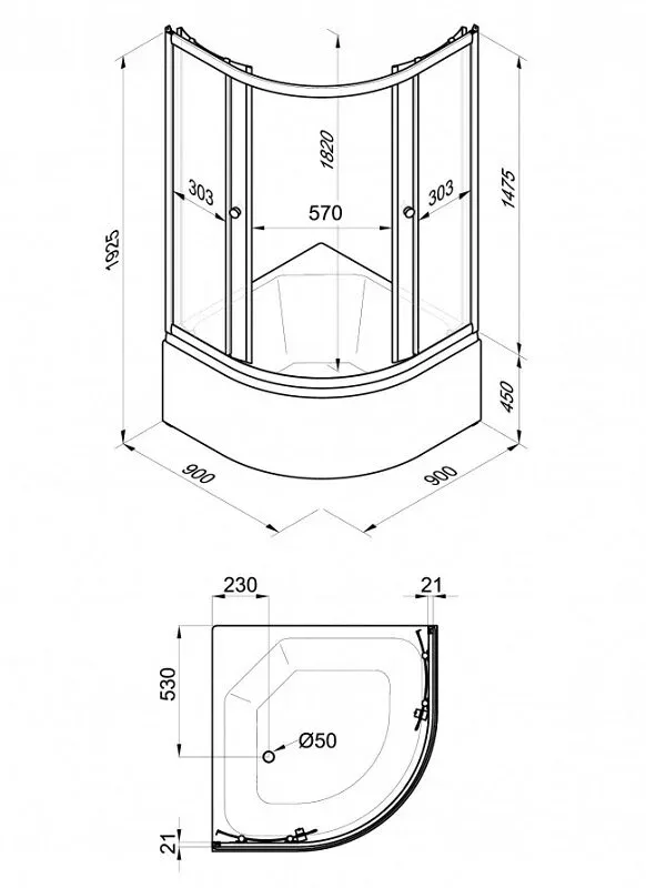 Душевой уголок Размер: 90 x 90 x 147.5 см Высота с поддоном: 192.5 см Конструкция дв... Подробнее