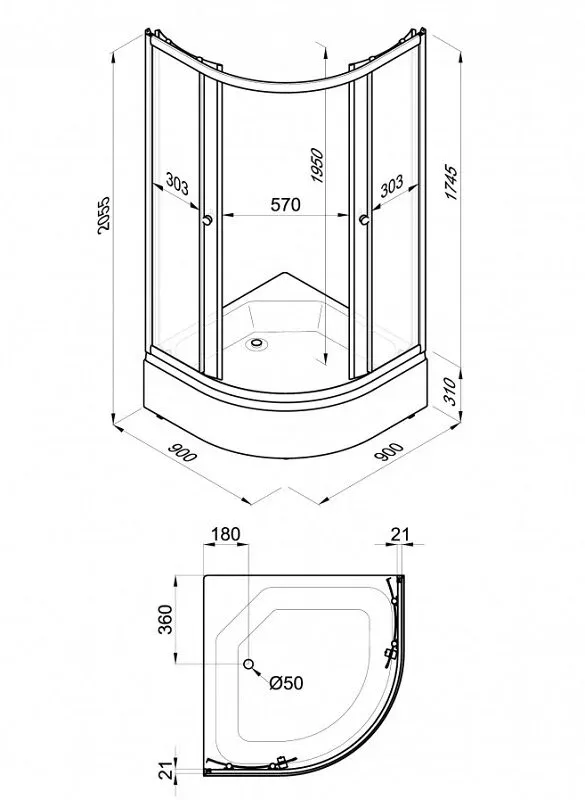 Душевой уголок Размер: 90 x 90 x 174.5 см Высота с поддоном: 205.5 см Конструкция дв... Подробнее