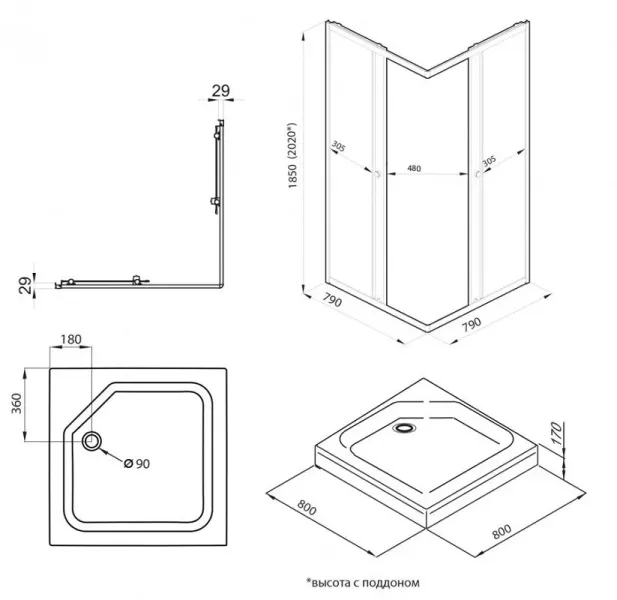 • Высота с поддоном: 202 см