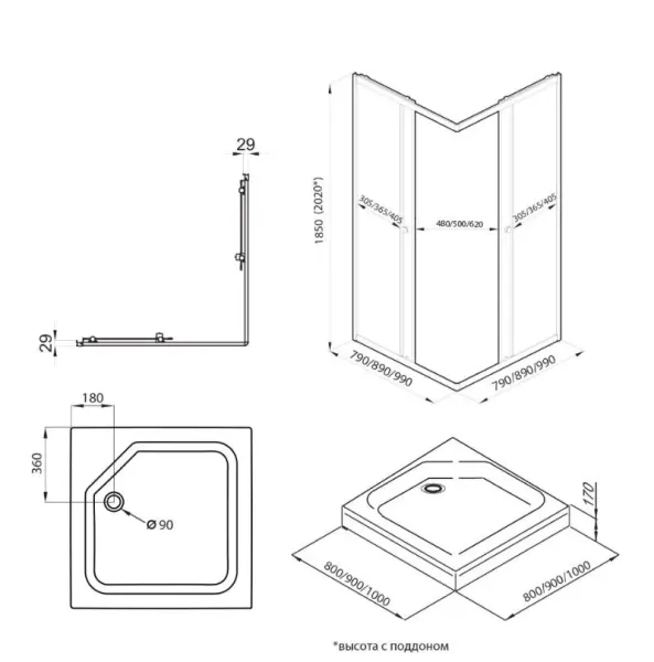 Размеры: 100х100х185 Профиль: Чёрный Переднее стекло: прозрачное Толшина стекла: 4 мм Тип д... Подробнее