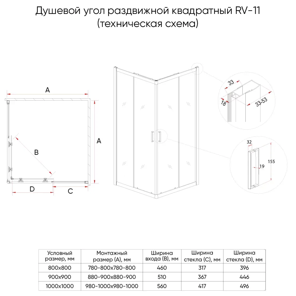 Душевой уголок Veconi Rovigo RV-11, 1100x1100x1950, хром, стекло прозрачное купить