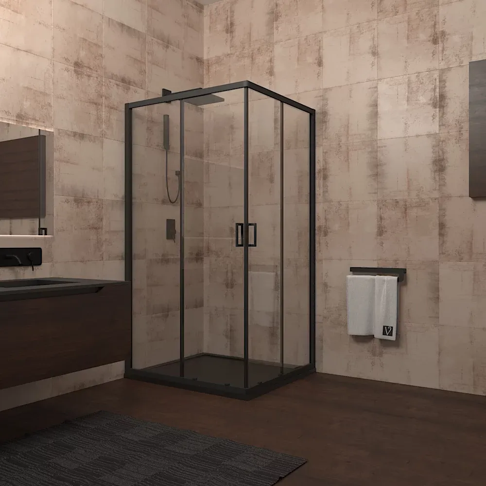 Душевой уголок Veconi Rovigo RV-13, 1000x1000x1950, черный, стекло прозрачное купить