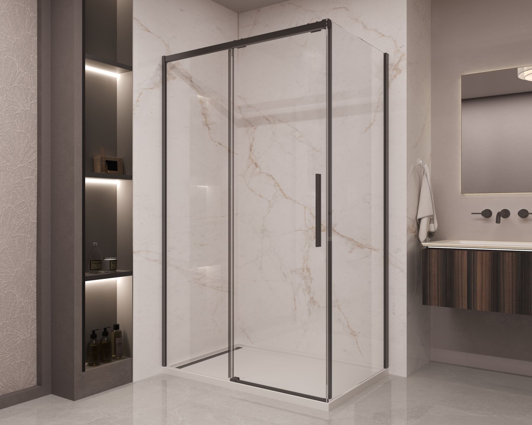 Душевой уголок Vincea Stella VSR-1ST8016CLB, 1600*800, черный, стекло прозрачное
