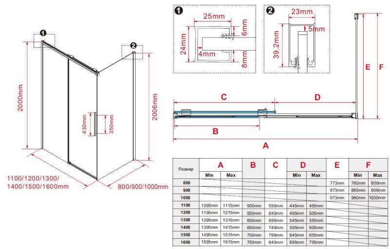 • Стандартные размеры, см: