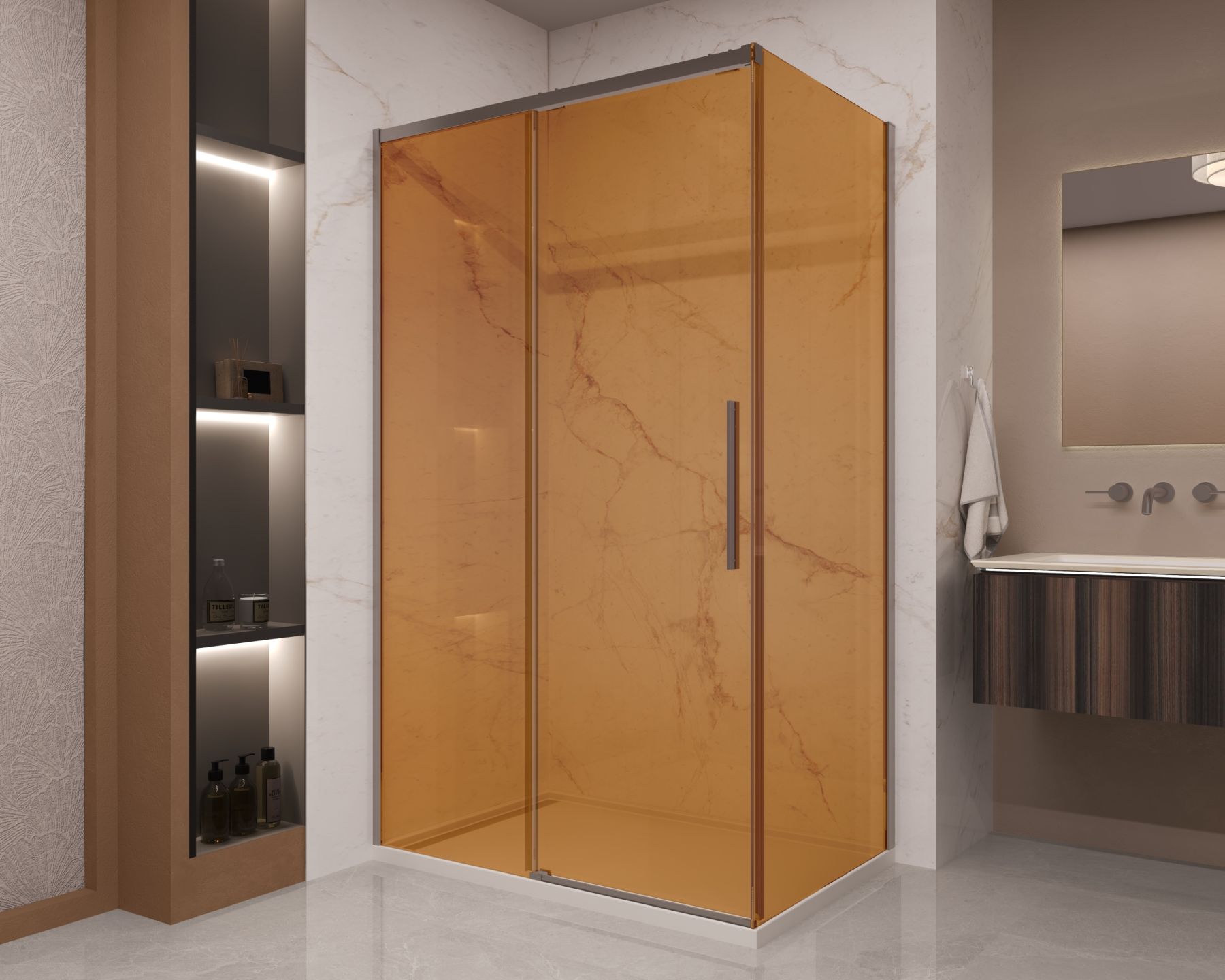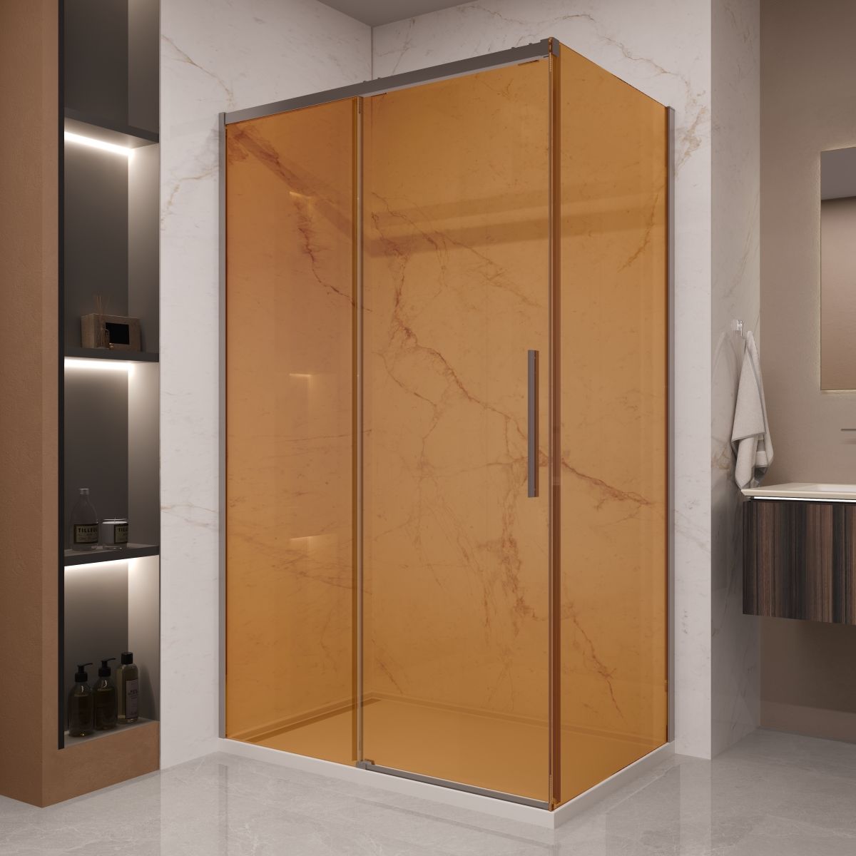 Душевой уголок Vincea Stella VSR-1ST9012GSGM, 1200*900, вороненая сталь, стекло янтарь купить