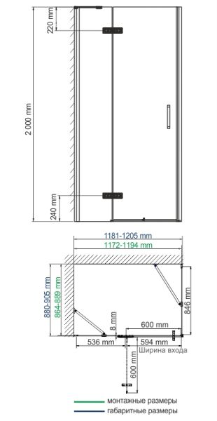 Душевой уголок Wasserkraft Aller 10H07LBLACK 120x90 левый
