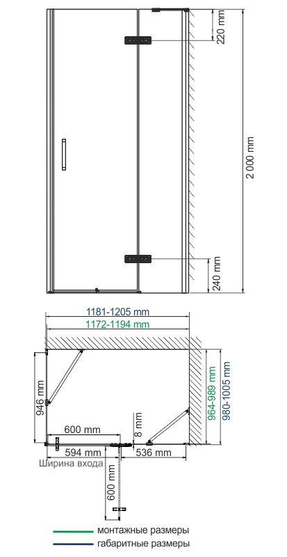 Душевой уголок Wasserkraft Aller Black 10H10RBLACK MATT 120x100 правый