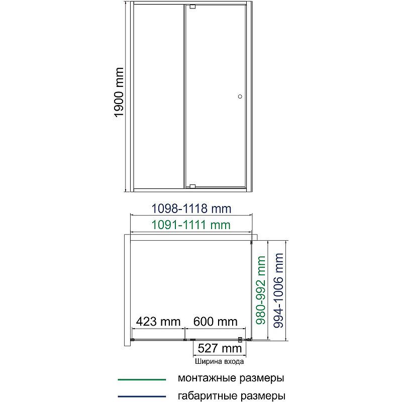 Душевой уголок WasserKRAFT Aula 110х100 11P16 профиль Хром стекло прозрачное