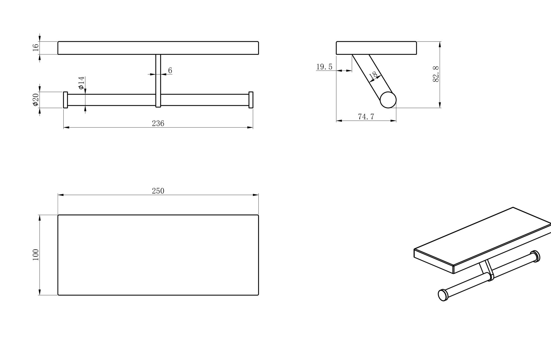 Двойной держатель для туалетной бумаги с полкой Wonzon & Woghand WW-V3802-MB чёрный матовый