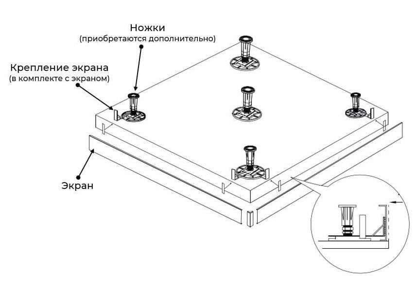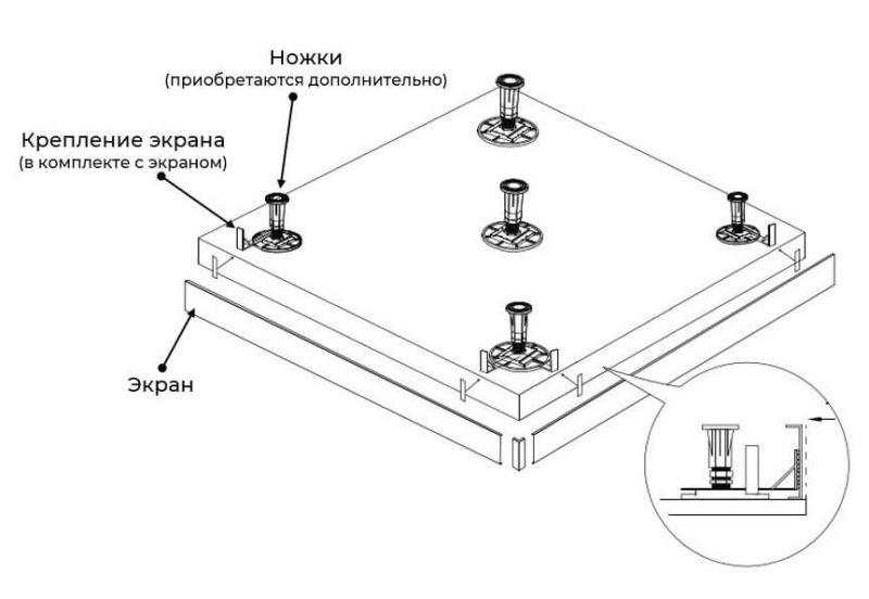 Рекомендованы ножки для поддона для установки экрана:
