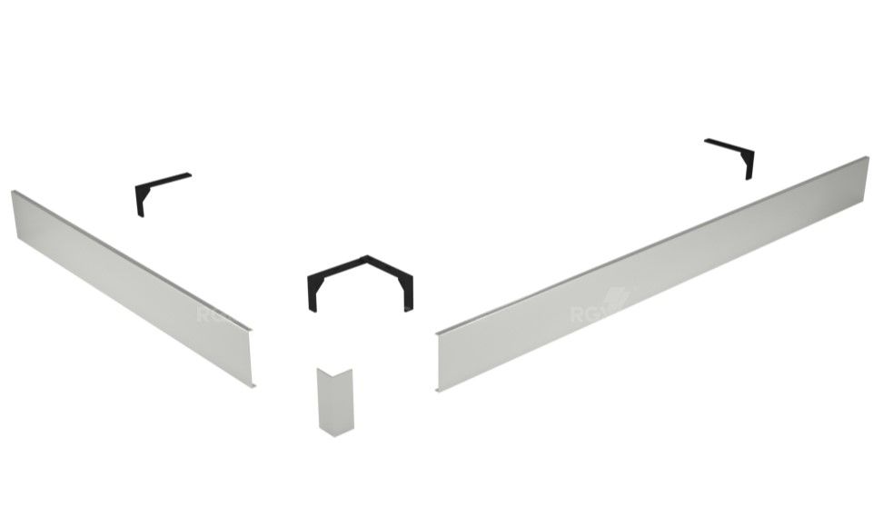 Комплектация: 2 экрана (фронтальный и боковой), соединительный уголок, крепление к ножкам на которые устанавливается поддон.