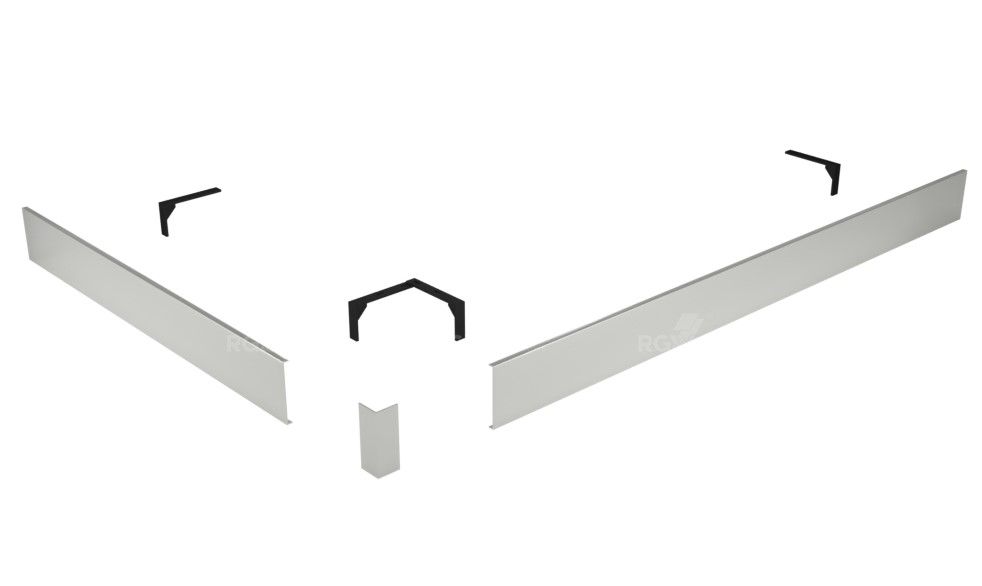 Комплектация: 2 экрана (фронтальный и боковой), соединительный уголок, крепление к ножкам на которые устанавливается поддон.