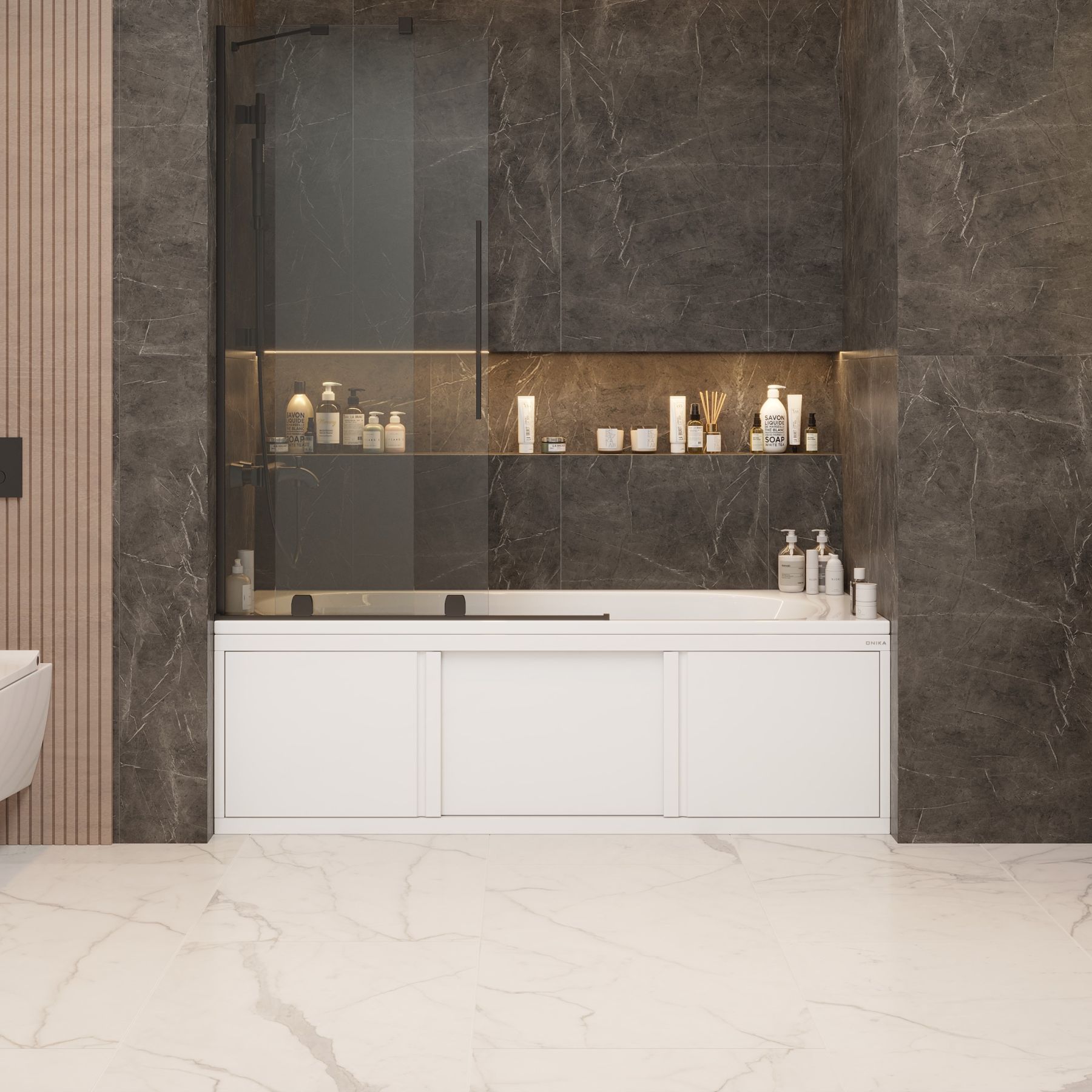 Универсальный экран под ванну 180 см Onika Одио скрывает все расположенные под ванной коммуникации и служит профилактикой скопления загрязнений под чашей ванны.