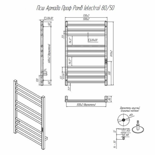 Электрический полотенцесушитель Altasan АрмадаПроф АрмадаПрофР8050БМ Белый матовый 80х50