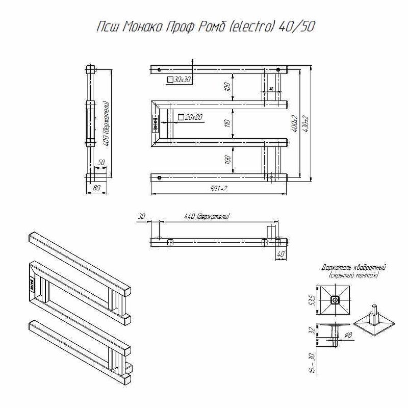 Электрический полотенцесушитель Altasan МонакоПроф МонакоПроф4050ЧМ Черный муар 40х50Данный полотенцесушитель имеет два вида подключения: подключение стандартным кабелем с вилкой 220 Вольт и скрытое подключение к заранее подведенной на месте установки проводке. Во втором случае необходимо обжать жилы проводки дополнительными клемниками (идут в комплекте) и подсоединить их к жилам полотенцесушителя, согласно цветовой разметки.