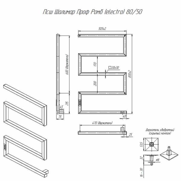 Электрический полотенцесушитель Altasan ШалимарПроф ШалимарПроф8050ЧМ Черный муар 80х50