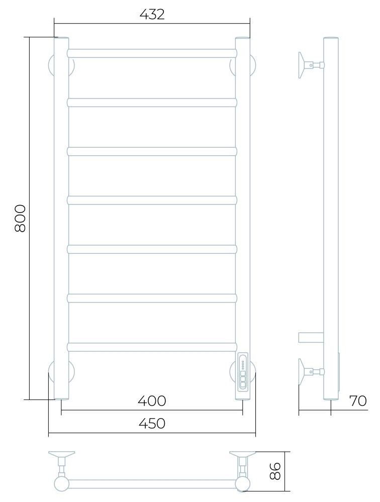 Полотенцесушитель предназначен для сушки тканевых изделий и обогрева ванных и душевых.Благодаря оптимальному химическому составу, современным промышленным технологиям и применяемому материалу "сталь" изделие отличается высокой коррозионной стойкостью при эксплуатации в органических кислотных и прочих умеренно агрессивных средах.Заглушки на концах стоек, тип диммера - кнопочный (Quick Touch), крепления к стене.