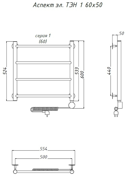 Электрический полотенцесушитель Тругор Аспект 1 60x50см хром Аспект1/элТЭН6050