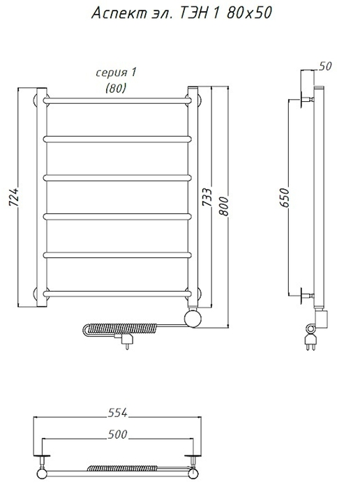 Электрический полотенцесушитель Тругор Аспект 1 80x50см хром Аспект1/элТЭН8050