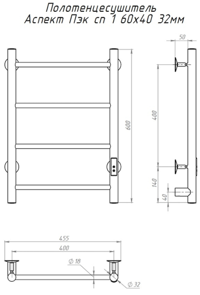 Электрический полотенцесушитель Тругор Аспект Пэк сп 1 60x40см хром АспектПэксп1/604032