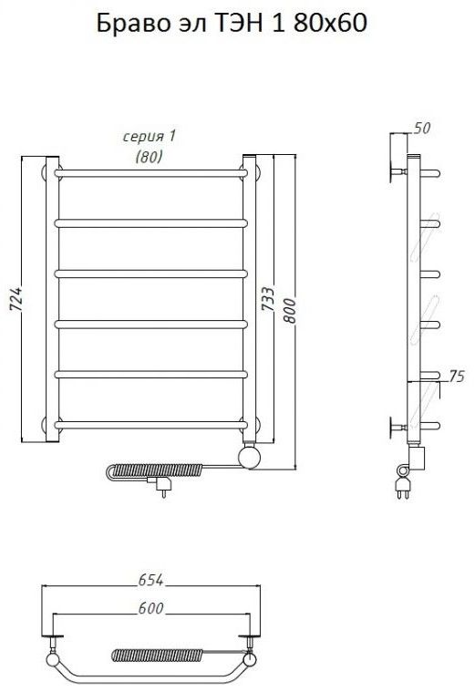 Электрический полотенцесушитель Тругор Браво 1 80x60см хром Браво1/элТЭН8060