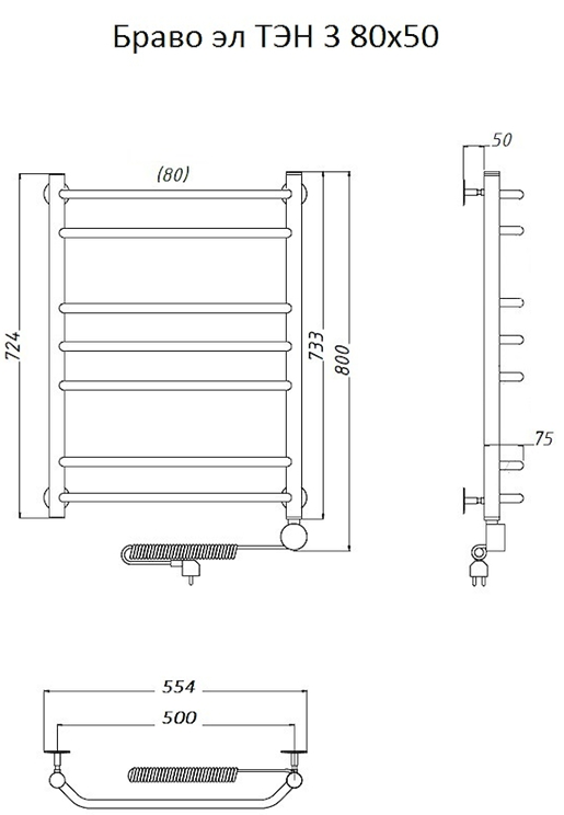 Электрический полотенцесушитель Тругор Браво 3 80x50см хром Браво3/элТЭН8050