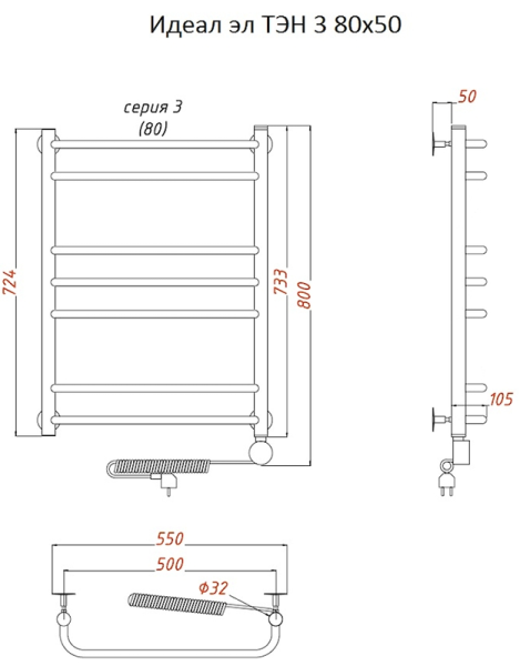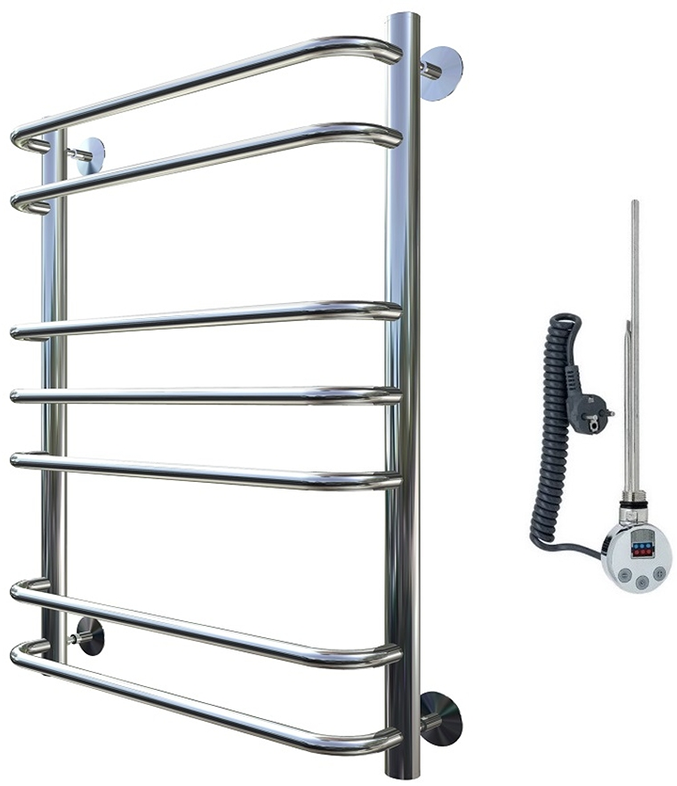 Внимание! Для скрытого монтажа электропроводки необходимо приобрести комплект скрытого подключения.Полотенцесушитель электрический комплектуется ТЭНом с терморегулятором и таймером.Изделие производится из нержавеющей стали AISI 201. Вертикальные трубы d -32 мм., для горизонтальных вставок используется труба d — 18 мм.Нагревательным элементом в полотенцесушителе является ТЭН. Полотенцесушитель заполнен бытовым антифризомЭкономичность: ТЭН нагревает антифриз до нужной температуры и выключается, далее при остывании полотенцесушителя он включается опять. Таким образом он работает не постоянно и получается, что ТЭН потребляет электричество не 300 Вт, а порядка 100 — 150 ВтМощность электрического прибора порядка 100 Вт при стоимости 1 Вт — 5 руб несложно посчитать: 100Вт х 24 = 2,4 кВт в сутки. Стоимость эксплуатации изделия за сутки 2,4 кВт х 5 руб. = 12 руб. При максимальной температуре расход электричества за 30 дней составит порядка 360 руб. При условии если сушка работает круглосуточно на максимальной температуре.Удобство монтажа: Полотенцесушитель крепится к стене на четыре держателя. Изначально ТЭН не установлен в полотенцесушитель для безопасной транспортировки, его можно установить, как справа, так и слева предварительно перевернув полотенцесушитель вверх ногами и выкрутив заглушку с нужной стороны на место в которое установится ТЭН.Примечание. Внимательно изучите инструкцию по установке ТЭНа!Скрытое подключение: Для скрытого монтажа электропроводки необходимо приобрести комплект скрытого подключения.Подключение в розетку: В комплекте с ТЭНом имеется шнур с вилкой, который будет необходим при подключении к розетке.