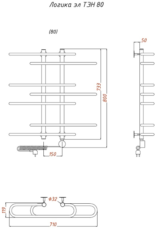 Электрический полотенцесушитель Тругор Логика 80x60см хром Логика/элТЭН8060