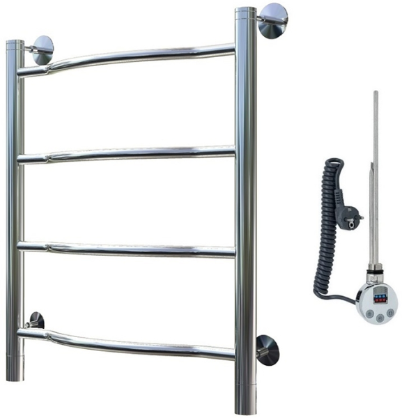 Внимание! Для скрытого монтажа электропроводки необходимо приобрести комплект скрытого подключения.Полотенцесушитель электрический комплектуется ТЭНом с терморегулятором и таймером.Изделие производится из нержавеющей стали AISI 201. Вертикальные трубы d -32 мм., для горизонтальных вставок используется труба d — 18 мм.Нагревательным элементом в полотенцесушителе является ТЭН. Полотенцесушитель заполнен бытовым антифризомЭкономичность: ТЭН нагревает антифриз до нужной температуры и выключается, далее при остывании полотенцесушителя он включается опять. Таким образом он работает не постоянно и получается, что ТЭН потребляет электричество не 300 Вт, а порядка 100 — 150 ВтМощность электрического прибора порядка 100 Вт при стоимости 1 Вт — 5 руб несложно посчитать: 100Вт х 24 = 2,4 кВт в сутки. Стоимость эксплуатации изделия за сутки 2,4 кВт х 5 руб. = 12 руб. При максимальной температуре расход электричества за 30 дней составит порядка 360 руб. При условии если сушка работает круглосуточно на максимальной температуре.Удобство монтажа: Полотенцесушитель крепится к стене на четыре держателя. Изначально ТЭН не установлен в полотенцесушитель для безопасной транспортировки, его можно установить, как справа, так и слева предварительно перевернув полотенцесушитель вверх ногами и выкрутив заглушку с нужной стороны на место в которое установится ТЭН.Примечание. Внимательно изучите инструкцию по установке ТЭНа!Скрытое подключение: Для скрытого монтажа электропроводки необходимо приобрести комплект скрытого подключения.Подключение в розетку: В комплекте с ТЭНом имеется шнур с вилкой, который будет необходим при подключении к розетке.