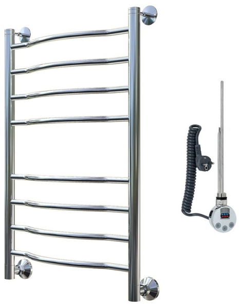 Внимание! Для скрытого монтажа электропроводки необходимо приобрести комплект скрытого подключения.Полотенцесушитель электрический комплектуется ТЭНом с терморегулятором и таймером.Изделие производится из нержавеющей стали AISI 201. Вертикальные трубы d -32 мм., для горизонтальных вставок используется труба d — 18 мм.Нагревательным элементом в полотенцесушителе является ТЭН. Полотенцесушитель заполнен бытовым антифризомЭкономичность: ТЭН нагревает антифриз до нужной температуры и выключается, далее при остывании полотенцесушителя он включается опять. Таким образом он работает не постоянно и получается, что ТЭН потребляет электричество не 300 Вт, а порядка 100 — 150 ВтМощность электрического прибора порядка 100 Вт при стоимости 1 Вт — 5 руб несложно посчитать: 100Вт х 24 = 2,4 кВт в сутки. Стоимость эксплуатации изделия за сутки 2,4 кВт х 5 руб. = 12 руб. При максимальной температуре расход электричества за 30 дней составит порядка 360 руб. При условии если сушка работает круглосуточно на максимальной температуре.Удобство монтажа: Полотенцесушитель крепится к стене на четыре держателя. Изначально ТЭН не установлен в полотенцесушитель для безопасной транспортировки, его можно установить, как справа, так и слева предварительно перевернув полотенцесушитель вверх ногами и выкрутив заглушку с нужной стороны на место в которое установится ТЭН.Примечание. Внимательно изучите инструкцию по установке ТЭНа!Скрытое подключение: Для скрытого монтажа электропроводки необходимо приобрести комплект скрытого подключения.Подключение в розетку: В комплекте с ТЭНом имеется шнур с вилкой, который будет необходим при подключении к розетке.
