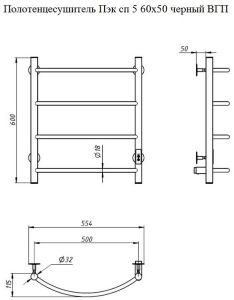 ПЭК — Полотенцесушитель электрический кабельный. Изделие производится из нержавеющей стали AISI 201. Вертикальные трубы d -32 мм., для горизонтальных вставок используется труба d — 18 мм.Нагревательным элементом в полотенцесушителе является греющий кабель — аналог «теплого пола», кабель заправляется внутрь каждой трубы и передает тепло на поверхность изделия. Во включенном состоянии постоянно поддерживается температура 50-600.Экономичность: Полотенцесушитель снабжен панелью управления. Кнопка включения/выключения и таймер на 2 часа и 4 часа, который позволяет включать изделие на ограниченное время. Эта функция дает возможность экономить электричество.Мощность электрического прибора порядка 60W при стоимости 1 кВт — 5 руб несложно посчитать: 60W х 24 = 1,5 кВт в сутки. Стоимость эксплуатации изделия за сутки 1,5 кВт х 5 руб. = 7,5 руб. Максимальный расход электричества за месяц примерно 225 руб. При условии если сушка работает круглосуточно.Удобство монтажа: Полотенцесушитель крепится к стене на четыре держателя. Универсальное исполнение изделия позволяет подключить его, как справа, так и слева.Скрытое подключение: Благодаря приваренным в нижней части вертикальных труб двум распаячным коробкам, в которых соединяется электропроводка, возможно скрытое подключение к электричеству слева и справа.Подключение в розетку: В комплекте также имеется шнур с вилкой, который будет необходим при подключении к розетке.Панель включения:РЕЖИМ №1 — постоянный нагревРЕЖИМ №2 — работа в течение 2 часов с последующим отключением.РЕЖИМ №3 — работа в течение 4 часов с последующим отключением.