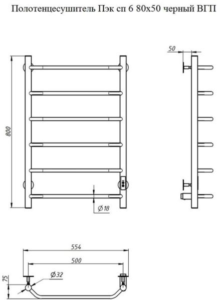 Электрический полотенцесушитель Тругор Пэк сп 6 80x50см белый Пэксп6/8050белыйВГП