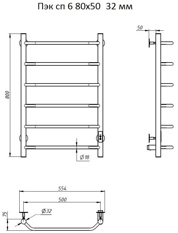 ПЭК — Полотенцесушитель электрический кабельный. Изделие производится из нержавеющей стали AISI 201. Вертикальные трубы d -32 мм., для горизонтальных вставок используется труба d — 18 мм.Нагревательным элементом в полотенцесушителе является греющий кабель — аналог «теплого пола», кабель заправляется внутрь каждой трубы и передает тепло на поверхность изделия. Во включенном состоянии постоянно поддерживается температура 50-600.Экономичность: Полотенцесушитель снабжен панелью управления. Кнопка включения/выключения и таймер на 2 часа и 4 часа, который позволяет включать изделие на ограниченное время. Эта функция дает возможность экономить электричество.Мощность электрического прибора порядка 60W при стоимости 1 кВт — 5 руб несложно посчитать: 60W х 24 = 1,5 кВт в сутки. Стоимость эксплуатации изделия за сутки 1,5 кВт х 5 руб. = 7,5 руб. Максимальный расход электричества за месяц примерно 225 руб. При условии если сушка работает круглосуточно.Удобство монтажа: Полотенцесушитель крепится к стене на четыре держателя. Универсальное исполнение изделия позволяет подключить его, как справа, так и слева.Скрытое подключение: Благодаря приваренным в нижней части вертикальных труб двум распаячным коробкам, в которых соединяется электропроводка, возможно скрытое подключение к электричеству слева и справа.Подключение в розетку: В комплекте также имеется шнур с вилкой, который будет необходим при подключении к розетке.Панель включения:РЕЖИМ №1 — постоянный нагревРЕЖИМ №2 — работа в течение 2 часов с последующим отключением.РЕЖИМ №3 — работа в течение 4 часов с последующим отключением.