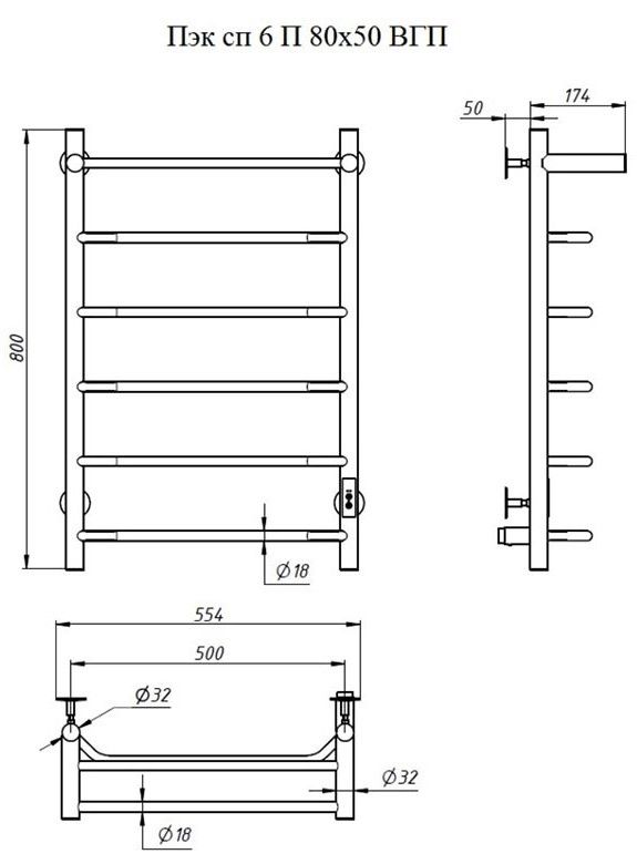 Электрический полотенцесушитель Тругор Пэк сп 6 П с полкой 80x50см белый Пэксп6П/8050белыйВГП