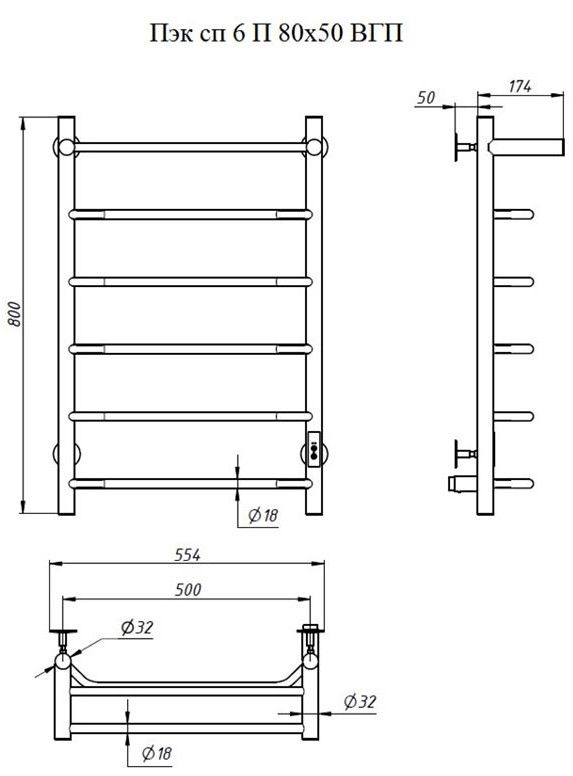 ПЭК — Полотенцесушитель электрический кабельный. Изделие производится из нержавеющей стали AISI 201. Вертикальные трубы d -32 мм., для горизонтальных вставок используется труба d — 18 мм.Нагревательным элементом в полотенцесушителе является греющий кабель — аналог «теплого пола», кабель заправляется внутрь каждой трубы и передает тепло на поверхность изделия. Во включенном состоянии постоянно поддерживается температура 50-600.Экономичность: Полотенцесушитель снабжен панелью управления. Кнопка включения/выключения и таймер на 2 часа и 4 часа, который позволяет включать изделие на ограниченное время. Эта функция дает возможность экономить электричество.Мощность электрического прибора порядка 60W при стоимости 1 кВт — 5 руб несложно посчитать: 60W х 24 = 1,5 кВт в сутки. Стоимость эксплуатации изделия за сутки 1,5 кВт х 5 руб. = 7,5 руб. Максимальный расход электричества за месяц примерно 225 руб. При условии если сушка работает круглосуточно.Удобство монтажа: Полотенцесушитель крепится к стене на четыре держателя. Универсальное исполнение изделия позволяет подключить его, как справа, так и слева.Скрытое подключение: Благодаря приваренным в нижней части вертикальных труб двум распаячным коробкам, в которых соединяется электропроводка, возможно скрытое подключение к электричеству слева и справа.Подключение в розетку: В комплекте также имеется шнур с вилкой, который будет необходим при подключении к розетке.Панель включения:РЕЖИМ №1 — постоянный нагревРЕЖИМ №2 — работа в течение 2 часов с последующим отключением.РЕЖИМ №3 — работа в течение 4 часов с последующим отключением.