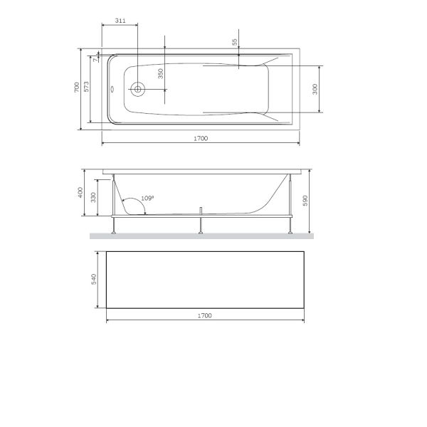 Фронтальная панель для ванны Am.Pm Gem S W93A-170-070B-P 170x70см чёрный матовый купить