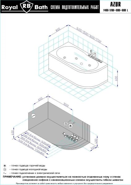 Акриловая ванна Royal Bath - идеальный выбор для создания атмосферы релакса и умиротворения, как в просторной в ванной комнате, так и в комнатном санузле. Основным преимуществом ванны из акрила считается её малый вес, высокая гигиеничность данного материала и низкая теплопроводность, долго сохраняющая комфортную температуру воды.Форма ванны Royal Bath замечательно подойдет к любому интерьерному решению, в различных вариантах размещения внутри ванной комнаты. Пристенная установка - это наиболее традиционный вид установки, а при использовании декоративного экрана пространство под ванной можно использовать как место хранения моющих средств. Оптимальная глубина позволяет принимать ванну с максимальным комфортом и полным расслаблением. Ванна Royal Bath выполнена со строгим соблюдением всех значительных элементов современного стиля.Благодаря тому, что родина бренда Royal Bath - Россия, можно смело быть уверенным в непревзойденном качестве и долговечности ванны, так как производство полностью соответствует стандартам качества. Акриловая ванна Royal Bath - это незаменимый, основной элемент любой ванной комнаты, без которого невозможно обойтись, ни в многоквартирном доме, ни в загородном коттедже.Комплектация гидромассажной ванны:- акриловая ванна Azur 150x80x60;- каркас сварной к ванне Azur 150;- панель к ванне Azur 150;- гидромассажная система на 5 форсунок;- спинной массаж на 6 форсунок;- аэромассаж с хромотерапией 8 форсунок;- слив-перелив для ванны полуавтомат 60 см.Ожидаемый срок поставки 7 дней.Обратите внимание: данная позиция поставляется под заказ! Товар поставляется по 100%-ной предоплате.Данный товар является заказным и имеет индивидуально-определенные свойства.