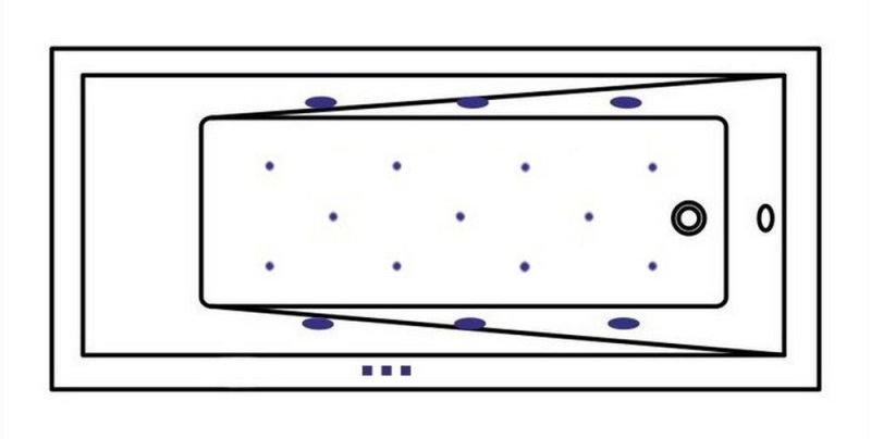 - Аэромассажная система (11 форсунок AERO-JET) с функцией регулировки интенсивности массажа;