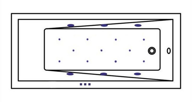 - Аэромассажная система (11 форсунок AERO-JET) с функцией регулировки интенсивности массажа;
