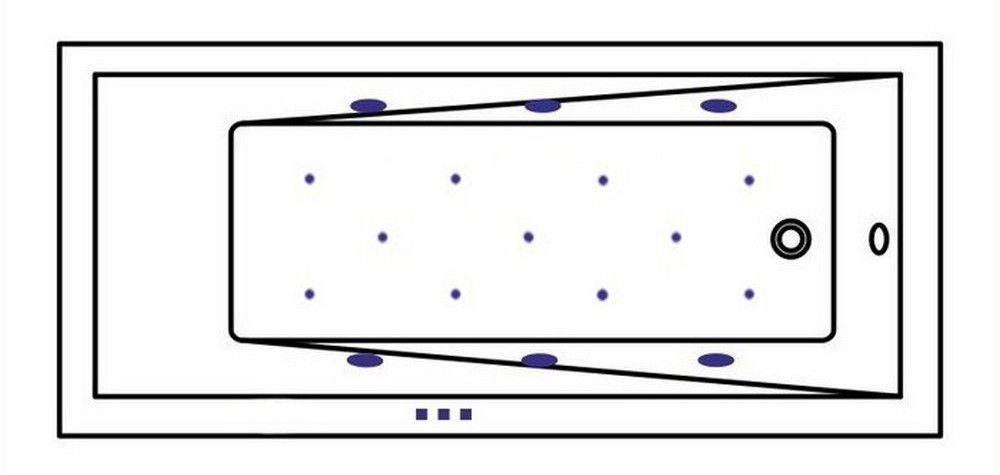 - Аэромассажная система (11 форсунок AERO-JET) с функцией регулировки интенсивности массажа;