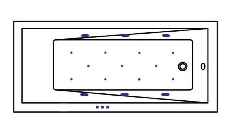 - Аэромассажная система (11 форсунок AERO-JET) с функцией регулировки интенсивности массажа;